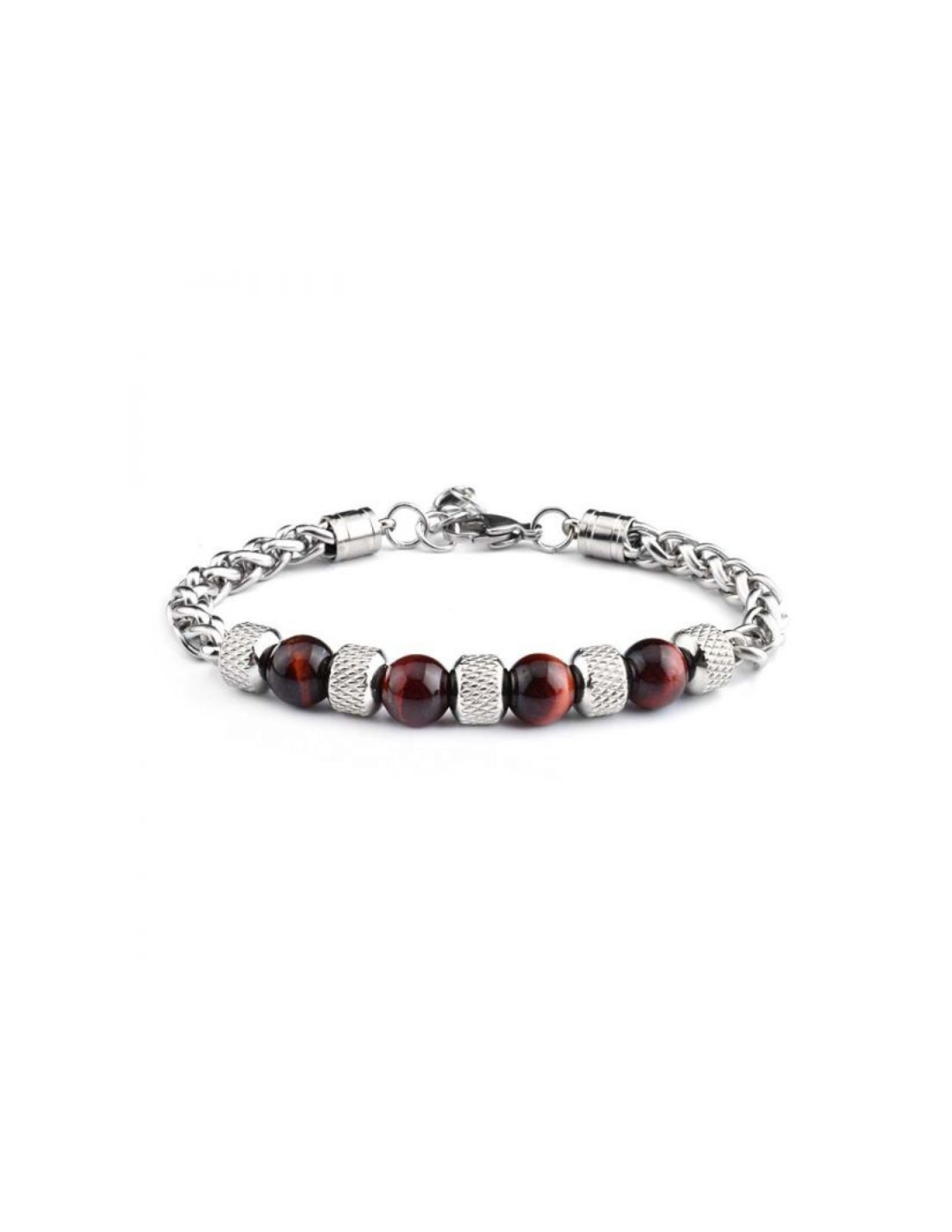 Braccialetto Occhio di Bue 8mm in Pietra Naturale e Acciaio