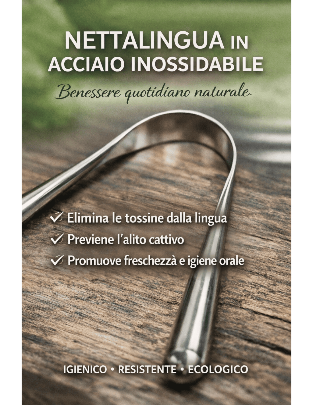 Il puliscilingua è fatto in India in Acciaio Inossidabile. Il raschietto dura nel tempo e avvolge la superficie della lingua con facilità, tenetelo con entrambe le mani per agevolarne l'uso. L'operazione richiede di solito solo tre passaggi: da un lato, al centro, dall'altro lato. Lavate via i residui dal vostro raschietto e passatelo ancora delicatamente sulla parte centrale. Se non vi sono residui, avete terminato la vostra pulizia della lingua. Non c'è alcuna necessità di ripetere l'operazione all'infinito! Sciacquate bene la bocca, con acqua pulita o con un colluttorio naturale.