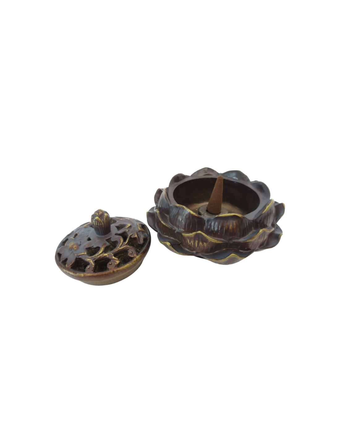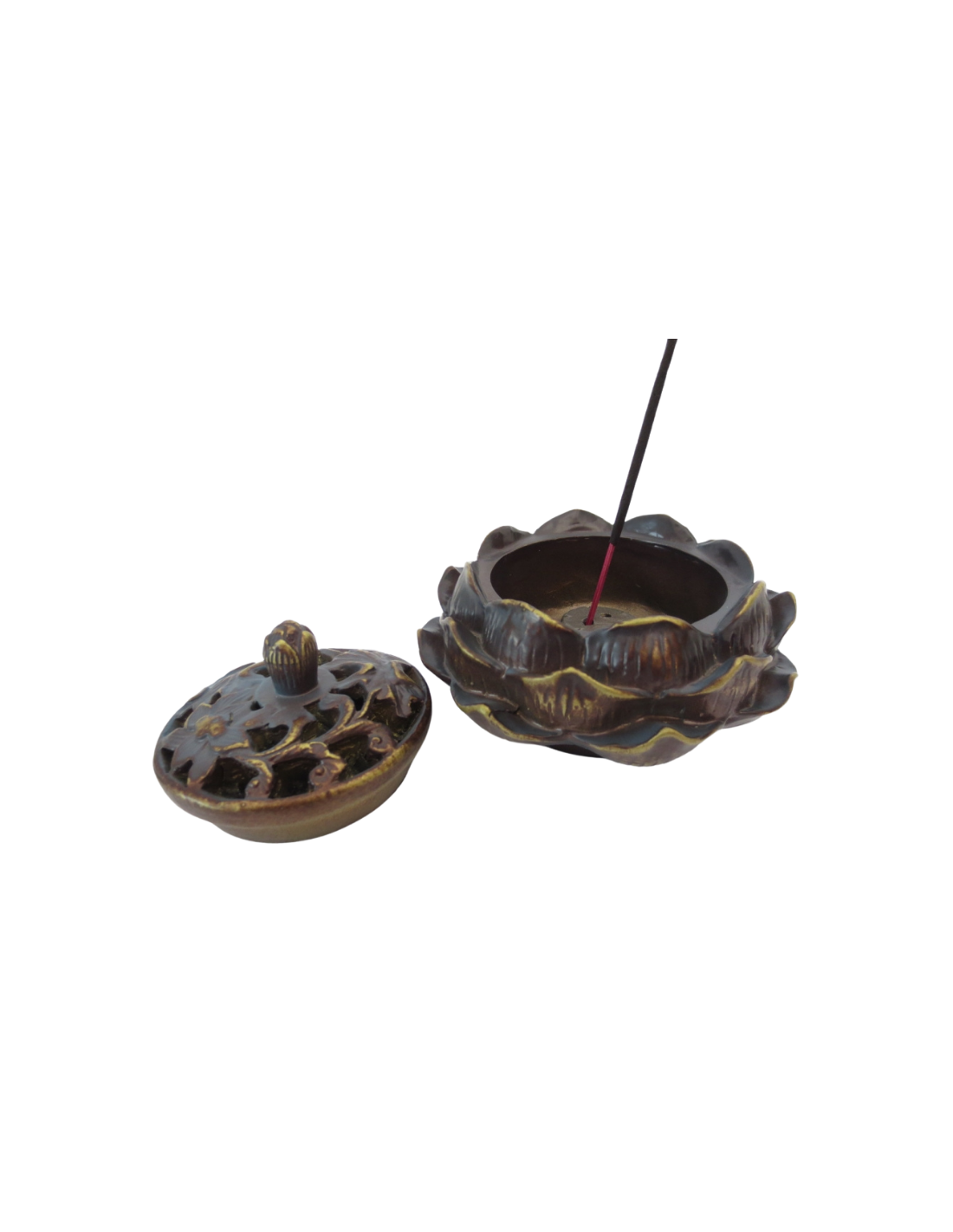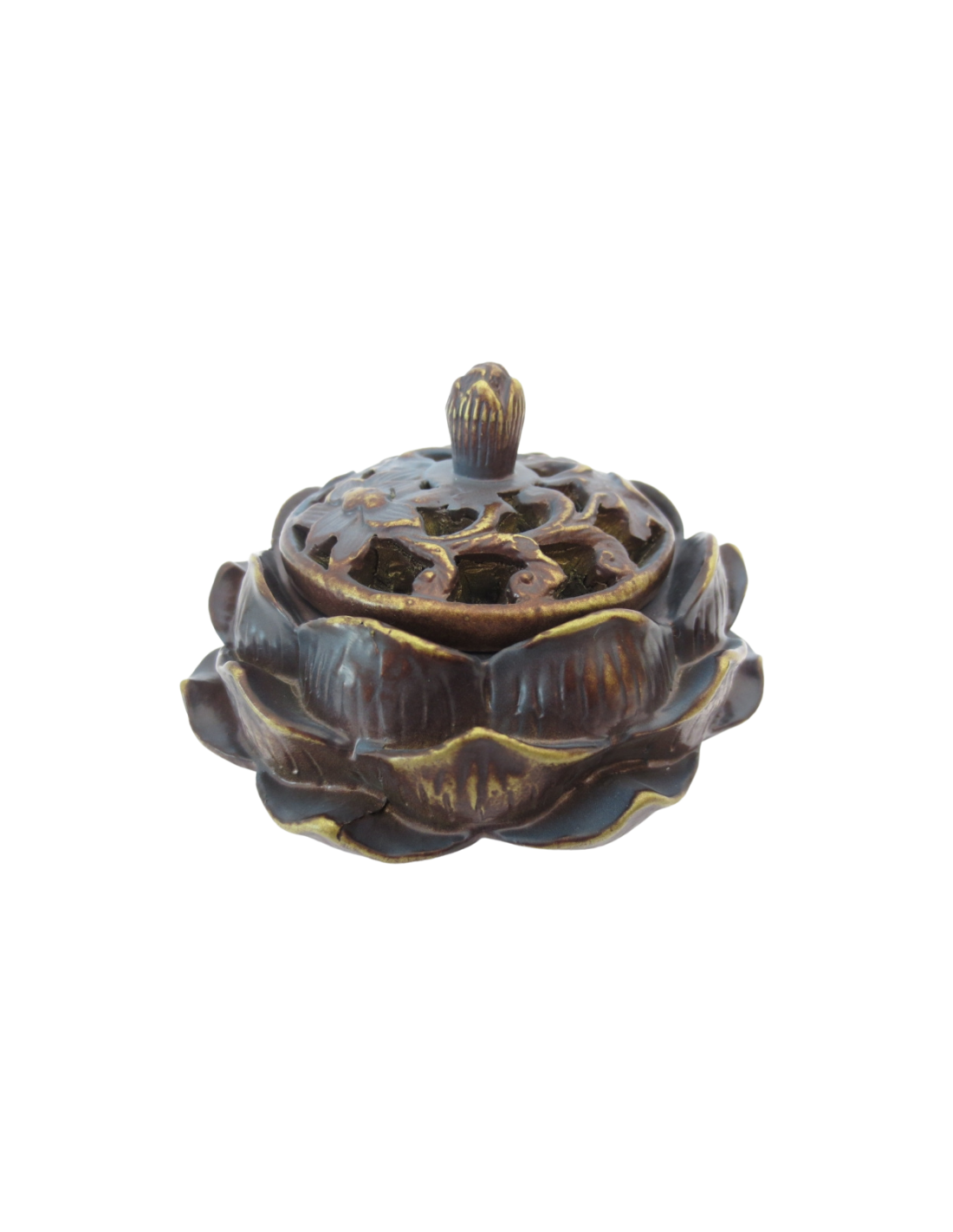 Supporto per coni e bastoncini incenso Loto - Marrone - Oro
