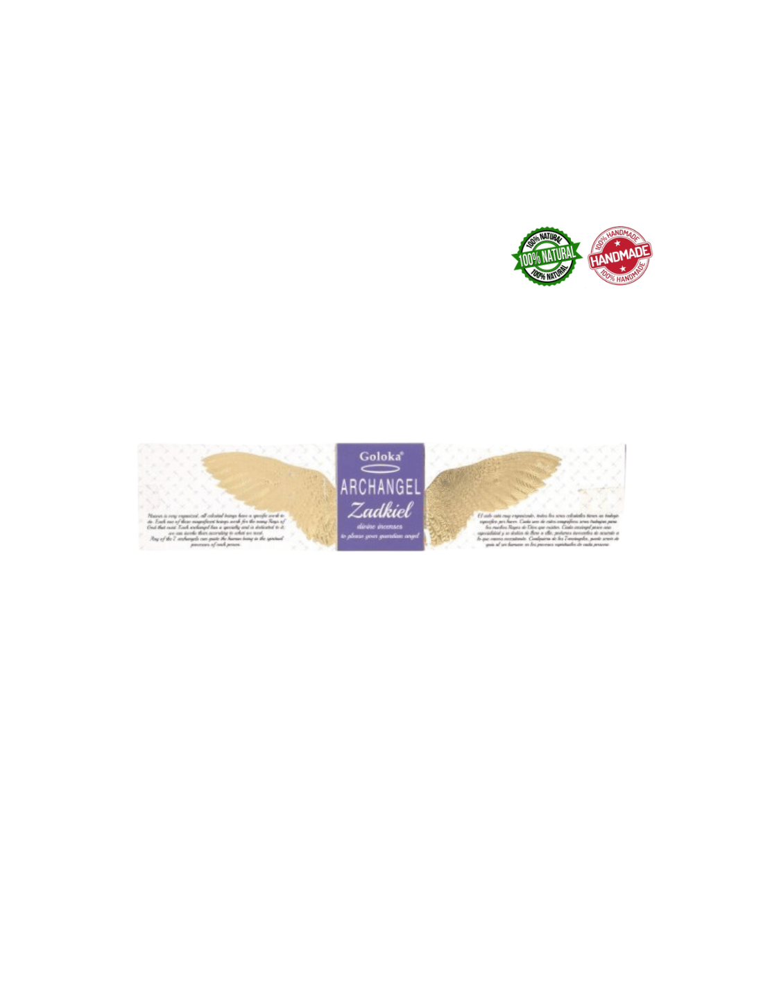 Zadkiel serve il 7° raggio divino contraddistinto dal colore viola. Zadkiel è l'arcangelo della libertà, della benevolenza, della compassione e anche della giustizia. E' al servizio della purificazione del karma, della trasmutazione e del perdono. Invochiamo Zadkiel per guarire la nostra anima, trasmutando le cause negative dalla loro origine e dissolvendo i disturbi. Ti aiuterà a restituire gioia alla tua vita eliminando il pessimismo ei sentimenti di sconfitta, impotenza e disperazione. La fragranza che caratterizza questi bastoncini d'incenso è la Lavanda.