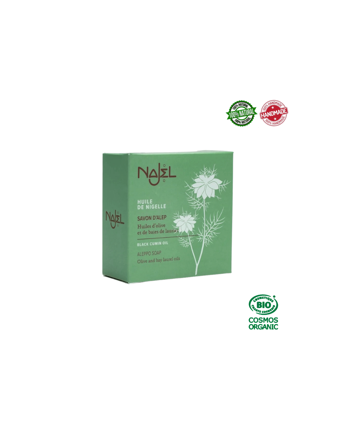 L'olio di cumino nero (Nigella Sativa) deriva dal seme omonimo, comunemente usato come spezia in cucina. Il Sapone di Aleppo con Olio di Cumino Nero migliora la qualità della pelle levigandone la consistenza e conservandone la bellezza. L'associazione di oli di oliva, alloro e cumino nero conferisce a questo sapone proprietà benefiche note per calmare le pelli più irritate.